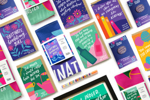 Jules,the artist behind the brand, uses vibrant colours and modern hand-lettering to create fun greetings cards, wall art, tea towels and pins - all designed to bring a little more sunshine into your life.